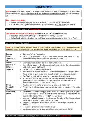 These exam notes cover the following topics: -Legislative Power; -Executive Power; -Judicial Power; -Federal an Economic Union; and -Representation and rights. They provide: - Hypo structures; - Detailed explanation of each topic; and - Easy to use case examples to weave into your exam responses.
