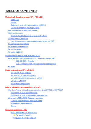 Comprehensive HD BTC1110 Commercial Law notes. Includes: - Hyperlinked sections - allow you to find relevant cases and sections under time-pressure during your final exam! - Exam question and answer guide - Case studies ~Topics (include all topics relevant for final exam)~ - Misleading and Deceptive Conduct - Unfair Contract Terms - False or Misleading Representations - Consumer Guarantees - Negligence & Pure Economic Loss - Law of Agency & Law of Partnerships - Corporation Law (Company)