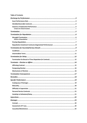 All you need to ace your final exam! I used these exact notes for my exam to get an 86% average between the two questions, significantly above the cohort average. They have all the examinable contents, case summaries and all statutory legislation sections needed to use as the only document you need in your final exam. Presented in a clear, concise manner all the pages are numbered and linked to a table of contents for easy exam use! The topics listed go into the required detail for all sections, including any exceptions and remedies where applicable - 1. Discharge by Performance 2. Termination 3. Termination for Repudiation 4. Termination for Essential/Serious Breach 5. Termination for Delay 6. Terminate - Election or Affirmation 7. Termination Consequences 8. Remedies 9. Specific Performance (including all factors) 10. Injunctions 11. Damages 12. Vitiating Factors 13. Recession 14. Information Problems 15. Misrepresentation 16. Misleading/Deceptive Conduct 17. Volition Problems 18. Duress 19. Undue Influence 20. Unconscionable Dealings 21. Relationship of the Doctrines 22. Statutory Unconscionability 23. Third Party Impropriety 24. Notice Principles in Australia