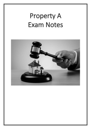 Use these notes to assist in exam answer structure, understand property concepts and identify case law. Note: these notes have not been updated and the law is subject to change. Topics include: Transfer of land Sale of land Act Gifts Leasehold covenants Assignment Termination of leases (with diagrams) Licences Easement Restrictive covenants Mortgages Nature and characteristics of property Doctrine of fixtures Removal of fixtures Fragmentation of proprietary interests Title to land Legal and equitable interests in land Doctrine of tenure Future interests Doctrine of waste Adverse possession Rights of finders