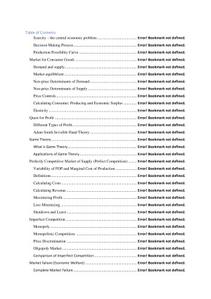 These notes were produced after having microeconomics in years 11 and 12, as well as in uni. They cover the relevant concepts in depth, allowing for easy application to this course assignment. These notes cover; 1. Scarcity and Opportunity Cost 2. Demand and Supply 3. Elasticity 4. Quest for Profit 5. Game Theory 6. Perfectly Competitive Market of Supply 7. Imperfect Competition 8. Market Failure - Externalities and Property Rights 9. Market Failure - Public Goods 10. Market Failure - Economics of Information