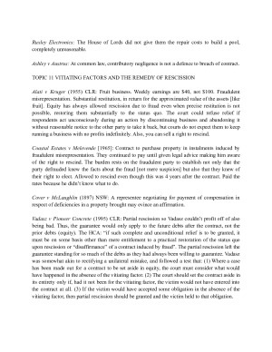 Topics 9 - 14 for the Semester 2 2023 exam, short case and legislation summaries taken for quick referral in the exam. Distinction grade. Brief facts of case to jog the memory + important quotes to cite in an essay + and the ratio/principles for both pqs and essays. While longer notes have been helpful in previous years, I have found that with the return to in-person exams, I need more concise notes that can be quickly referred to in the exam room. These notes have been made with this purpose in mind - enjoy! TOPIC 9: CAUSATION AND REMOTENESS OF DAMAGE IN CONTRACT TOPIC 10: MEASURE OF DAMAGES IN CONTRACT AND SUMS FIXED BY CONTRACT TOPIC 11: INTRODUCTION TO VITIATING FACTORS AND THE REMEDY OF RESCISSION TOPIC 12: MISTAKE AND DURESS TOPIC 13: UNDUE INFLUENCE, UNCONSCIONABLE CONDUCT AND UNFAIR CONTRACT TERMS TOPIC 14: MISREPRESENTATION AT GENERAL LAW AND STATUTORY LIABILITY FOR MISLEADING OR DECEPTIVE CONDUCT