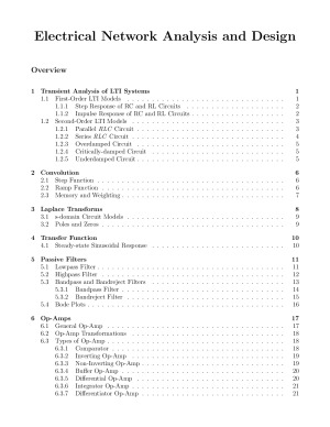 Clear and concise ELEN30009 ENAD Notes and Summary that I created and typeset. This summary gives you an excellent overview of the entire subject as well as is perfect for revising for the final exam. Includes important formulae, circuit diagrams and plots. Outline of topics 1. Transient Analysis of LTI Systems 2. Convolution 3. Laplace Transforms 4. Transfer Function 5. Passive Filters 6. Op-Amps 7. Two-Port Circuit Analysis 8. Active Filters 9. Non-Ideal Op-Amps