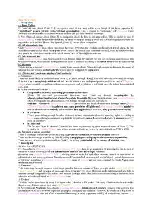 Complete Notes for Final - Title to Territory - State Jurisdiction - Immunity from Jurisdiction - Diplomatic Immunity - State Responsibility - Diplomatic Protection - Use of force - International Dispute Settlement