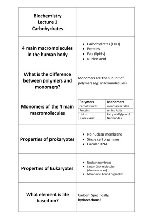 Week 1 - Carbohydrates Week 2 - Amino Acids Week 3 - Proteins Week 4 - Lipids Week 5 - Signal Transduction