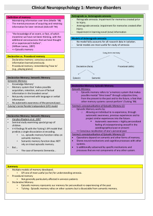 These comprehensive notes helped me achieve a H1 overall subject mark, I hope you find them helpful! Lecture 2: Ethical Decision Making in Science Lecture 3: Applied Psychology 1: Behaviour Change Lecture 4: Applied Psychology 2: Consumer Psychology Lecture 5: Career pathways in Psychology Lecture 6: Clinical Neuropsychology 1: Disorders of Memory: Theory and Anatomy Lecture 7: Clinical Neuropsychology 2: Disorders of Memory: Case Studies Lecture 8: Aboriginal and Torres Strait Islander Peoples’ Social and Emotional Wellbeing 1 Lecture 9: Aboriginal and Torres Strait Islander Peoples’ Social and Emotional Wellbeing 2 Lecture 10: Evidence-based practice 1: What is EBP? Lecture 11: Evidence-based practice 2: Clinical Psychology