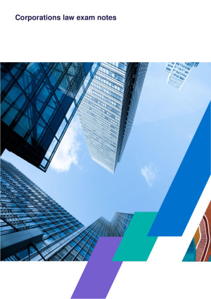 This initially started off as exam notes, but I thought that given how complicated and statute-heavy Corporations/Company course was, I decided to develop it into a complete course guide for students in the order you would use for an exam. You won’t even need to spend $200 on textbooks! Sectioned by topic groups, and then individual topics. Relevant legislation in every topic so no need to cross-reference multiple documents. Exam hypotheticals model answers woven through each topic. Incorporation and its effects • Incorporation • Registration • Consequences • Legal person • Corporate groups and subsidiaries • Insolvent trading • Management and decision making Duties • To whom are they owed • Duty to act in good faith/for a proper purpose • Duty of care • Conflicts and profits Shareholder action • Equitable limitation • Limits on ratification – breach and expropriation • Alterations of company constitution Remedies • Personal actions • Statutory derivative action • Statutory oppression remedy • Injunctions • Winding up Corporate liability • Direct entry • Indirect entry • Criminal and tort liability Share capital • Capital maintenance rules • Dividends • Reductions of capital • Share buy-backs • Financial assistance for acquisition of shares • Companies power to issue shares Essay topics: • History of corporations law • Theories of company • Regulatory framework