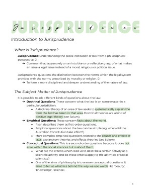 These notes cover weeks 1-12 and textbook content, including: - Introduction to Jurisprudence - Law and Force: Austin v Hart - Contemporary Positivism - Natural Law Theory - Adjudication: Formalism v Purposivism - Adjudication: Hart v Dworkin - American Realism and Critical Legal Studies - Difference - Rights - Freedom - Inequality - Civil Disobedience