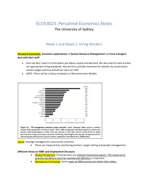 These notes cover each week of the ECOS3023 course notes and were used by me to achieve my Distinction mark. These notes cover the following topics: 1. Hiring Workers 2. Optimal Financial Incentives for Work 3. Using Wage Contracts to Select Workers 4. Multiple Tasks and perverse Incentives 5. Benefits and Intrinsic Motivation 6. Performance Measures and Subjective Performance Evaluation 7. Relative Performance, Promotion and Wage Dynamics 8. Working in Teams and Free Riding 9. Training