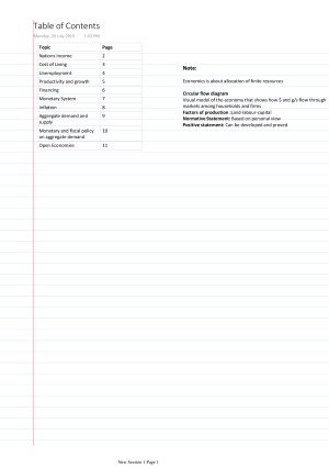 Macroeconomics is about learning some key ideas/theories/facts and then applying them to many various situations. For examinations, you must know what happens in which situation and then apply that knowledge to the given theoretical situation. Don't waste your time by reading over complicated and excessive notes that will clearly never be remembered. Mine are as simple and as short as they get. It is important not to over cram with useless information, but to focus on what is necessary to know. In my ECON1010 notes, I summarised the key knowledge from the text book, lectures and class tutorials. This set of notes was the only source I used for my study for this subject... Do what I did, and get a HD in Macroeconomics. The notes are presented in PDF, in a similar format to what would be found when handwriting the key notes in a work book. REMEMBER; IT IS IMPORTANT TO GO TO ALL YOUR ECON1010 LECTURES IF YOU WANT A HD.