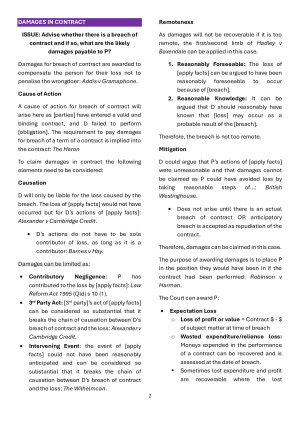 Topics Covered: Introduction to Remedies/Damages in Contract; Discharge of Contract by Performance; Discharge of Contract by Termination; Discharge of Contract by Frustration; Recission, Rectification, and Restitution; Specific Performance; Injunctions; Equitable Damages; Declarations; Unfair Terms; Competition and Consumer Legislation Remedies; Enforcement Issues. Weeks Covered: 1-5, 7-9, 11 Perfect succinct notes to bring into in-person exam.