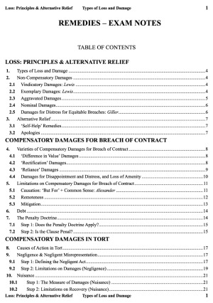 Comprehensive exam notes for the Semester 1, 2024 Remedies course. These notes include key principles, rules, and case summaries/analogies for all topics in the course including: (1) damages for breach of contract; (2) damages for tortious wrongs; (3) remedies under the ACL; (4) equitable compensation; (5) accounts of profit; (6) Lord Cairns Act damages; (7) specific performance and injunctions; (8) restitution; and (9) recission. I have sold over 100 copies of exam notes over a broad range of subjects in the Melbourne JD, including Property, Administrative Law, Taxation Law and Policy and Employment Law. You can be confident that these notes will put you in good stead for the subject at any time of the semester!