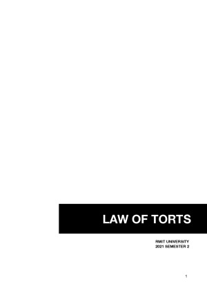 Law of Torts Notes that covers - Foundations of Torts - Battery - Assault - False Imprisonment - Trespass to Land - Nuisance - Trespass to Goods - Conversion - Detinue - Trespass Defences - Defamation - Defamation Defences - Negligence - Duty of Care - Negligence - Breach of Duty - Negligence - Causation - Negligence - Defences - Vicarious Liability - Remedies