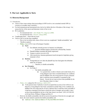Why buy these notes? ✓ Digestible ✓ Comprehensive ✓ Scaffold for ANY question ✓ Case summaries with PINPOINTS Tell me more! Clear, easy to understand, yet comprehensive set of notes on Private International Law A. This document includes notes on all relevant legislation and case law, which clearly defines the facts, decision and key principles of each case listed on the unit reading guide. IN ADDITION, this document contains scaffolds which provide a clear step-by-step process for solving all types of problem questions with appropriate authorities and pinpoint references. These scaffolds are all that I relied on during the final exam. These notes were made through a close reading of the required reading (cases, legislation and textbook), compiling a range of notes written by HD students and using a range of in-depth supplementary readings and textbooks. Hundreds of hours have been invested into perfecting these notes. Topics: - Introduction to Private International Law - Personal jurisdiction: at common law; service in Australia, service in New Zealand - Personal jurisdiction: service outside Australia - Discretionary non-exercise of jurisdiction: foreign jurisdiction clauses - Discretionary non-exercise of jurisdiction: forum non conveniens; intra-Australian and New Zealand cases - Anti-suit injunctions - General applicable law topics: introduction to choice of law in Australia; characterisation - Substance and procedure - Foreign law - The law applicable to torts - The law applicable to contracts - Mandatory rules and the law of the forum - Recognition and enforcement of foreign judgments - Recognition and enforcement of foreign judgments
