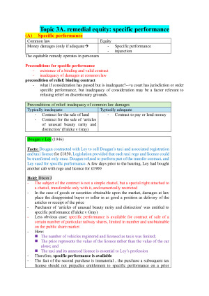 Comprehensive, structured and colour-coded notes for Equity that made me achieve Distinction (83). The full notes include the essence of previous year’s notes, course notes and all the necessary information needed for the exam. This makes it much easier to study and quickly prepare for doing the problem-based questions. I extracted the most important principles or points in red and marked in the case, which can be directly applied in the exam. Topics: [1] History & Nature of Equity [2] Applications of the Conscience of Equity [3] Remedial Equity [4] The Nature and Constitution of Trusts [5] Operation of Express Trusts [6] Fiduciary Obligations [7] Resulting Trusts [8] Constructive Trusts [9] Tracing [10] Charity