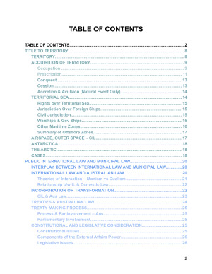 These are HD notes that are comprehensive enough that nothing is missed, but short enough that it won't take too long in an exam to flick through, as such, certain words have been shortened :) There is a table of contents to make it easier as well as every case being highlighted. I achieved an HD mark in the final exam. Check out my other notes too! Topics covered: Title to Territory Public International Law and Municipal Law State Jurisdiction Immunity from Jurisdiction State Responsibility Use of Force Implementation, Enforcement, and Accountability
