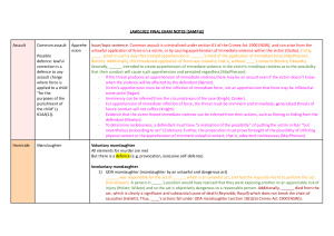 I recieved a HD in the final exam using these notes. They are set out in an easy to follow, colour-coded (IRAC structure) table format, making them perfect to tackle a complex problem scenario. Each topic has pre-written statements to adapt in the exam and includes all key statutory provisions and case law. These statements also include what next steps to go to, if X is not satisfied go to Y. They are comprehensive and include all topics studied, including: - Assault (common assault, aggravated assault) - Homicide (murder, constructive murder, manslaughter, homicide by omission, assault causing death, supply of drugs causing death) - Defences (mental health and cognitive impairment, substantial impairment, intoxication, self-defence, excessive self-defence, extreme provocation) - Dishonest acquisition (dishonesty and fraud, larceny) - Group crime (complicity - JCE; EJCE; accessorial liability, conspiracy) I hope these notes help!! :)