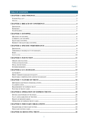 List of topics: Breach of Confidence, Estoppel, Specific Performance, Injunction, LCA Damages, Trust (Express, Resulting, Constructive), Fiduciary, Tracing