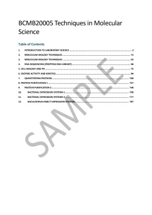 Full Comprehensive Notes covering weeks 1-12 including topics: - Introduction to Laboratory Science - Molecular Biology Techniques - DNA Sequencing - Cell Biology and pH - Enzyme Activity and Kinetics - Quantitating Proteins - Protein Purification - Bacterial Expression Systems - Baculovirus-Insect Expression Systems