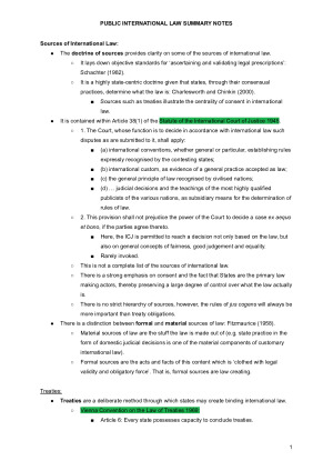 Very extensive high distinction (88/100) final exam scaffold, suitable for essays and problem questions. It covers: - Sources of international law - Treaties - International and domestic law (monism and dualism, customary international law in Australian law, treaties in Australian law) - Personality, recognition and self-determination - State title to territory - State jurisdiction - Immunities from jurisdiction - State responsibility - The use of force - Settlement of disputes