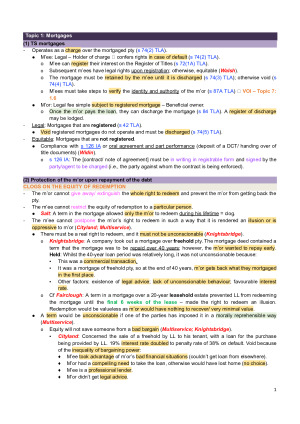 These notes are detailed, neatly formatted (with headings, subheadings and tables) and contain concise summaries of lecture notes, legislation and cases that allowed me to score 51/60 (85%) in the final exam. Topics include: 1. Mortgages 2. Equitable Interests Arising by Operation of Law 3. Co-Ownership 4-5. An Introduction to the Enforceability of Property Interests, Systems of Title, the Torrens System and Conveyancing 6. Indefeasibility of Title 7. Exceptions to Indefeasibility of Title 8. Unregistered Interests Under the Torrens System