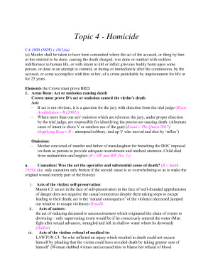 Detailed, clear scaffolds for criminal law final exam. Structured in the elements of each offence. Includes relevant cases and statute. Covers: - homicide - homicide II - assault, wounding and GBH - sexual offences - larceny - complicity - extreme provocation - self-defence and excessive self-defence -duress and necessity - mental health impairment or cognitive impairment and substantial impairment because of mental health impairment or cognitive impairment -automatism