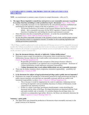 Comprehensive, clear scaffolds for final exam covering all topics from the year. The scaffolds have headings with different scenarios that might appear in the problem question that you can identify and then follow the scaffold. Covers the following topics and all of their sub-topics, informed by readings and lectures with reference to all relevant cases and legislation: 1. Manner and form restrictions 2. Amending the Cth constitution 3. The Cth and the Cth franchise 4. Eligibility of Federal Parliamentarians 5. General statutory Interpretation 6. Legislative power 7. A responsible executive 8. Non-statutory executive powers (make sure you add in recent 2024/2025 HC cases on this topic) 9. Freedom of information and responsible government 10. Ch III safeguards for judicial power