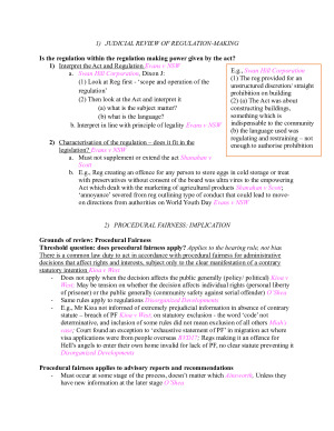 Comprehensive scaffolds for administrative law exams/ LAWS5010/ LAWS 2010 HD result Covers all topics: 2. Merits review 3. Judicial review 4. Standing 5. Judicial review of regulation-making 6. Procedural fairness 7. Considerations, purposes, policies and representations 8. Unreasonableness 9. Errors of law and fact 10. Jurisdictional error and invalidity 11. Judicial review remedies 12. Restricting judicial review