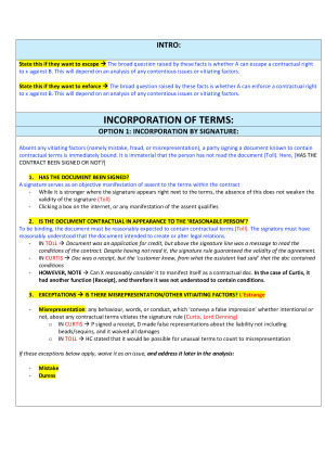 These are the notes I used in Contracts at Unimelb to recieve an 88 on the final exam. They are easy to understand, clear, and include all the relevant cases, ACL provisions, and principles needed! Includes: - Interpretation - Incorporation - Implied Terms - Terms implied by law - ACL Statutory incorporation - Termination - Frustration - Non fulfilment of contingent conditions - Breach - Repudiation - Mistake - Vitiating Factors - Illegality