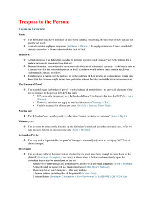 LAW1113 – Long Set Torts Notes COVERS EVERYTHING