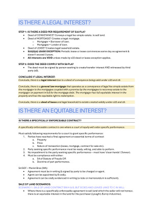 Property law notes for final exam - easy to read with concise attack plans TOPICS COVERED: • Concept of property • Possession • Rights to lost property • Adverse possession • Real property • Legal interests • Equitable interests • Priority disputes • Mere equities • Resulting trusts • Co-ownership & joint tenancy • Doctrine of tenure & estates