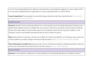 Want to ace your law exam with confidence? Grab a copy of my HD-level exam notes — the same ones that helped me average a High Distinction across the entire semester. These notes cover all 6 topics in the course, and are structured as a step-by-step guide on how to tackle each exam question effectively. Every section is packed with essential case law, legislation, and red flags, making it easy to identify key issues and apply the right principles under pressure. Whether you're aiming to boost your marks or just stay on track, these notes are your shortcut to writing clear, structured, and persuasive answers. Topic 1 - Introduction Topic 2 - Breach of Confidence Topic 3 - Fiduciary Relationships and Breach of Fiduciary Duty Topic 4 - Personal Equitable Remedies Topic 5 - Proprietary Equitable Remedies Topic 6 - Assignment of Property Rights in Equity