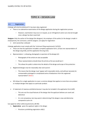 Topics included: 1 - Commercial Misrepresentation - Passing Off - Misleading and Deceptive Conduct 2 - Trademarks 3 - Copyright 4 - Designs 5 - Patents 6 - Breach of Confidence