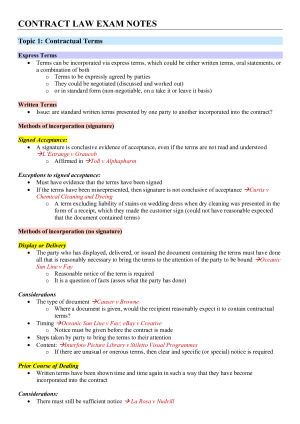 Topics Covered: Topic 1: Contractual Terms Topic 2: Interpreting Contracts/ Limiting Liability Topic 3: Performance Topic 4: Varying Terms & Parties Topic 5: Termination Topic 6: Vitiating Factors Topic 7: Remedies