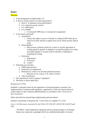 High quality and comprehensive notes based on "Clive Turner and John Trone, Australian Commercial Law, 2022, 34th edition, Thomson Reuters" and lecture slides. Includes further snippets from relevant cases and legislation and enumerated summaries of elements. Content covered: Concept and Nature of Personal Property Bailment Agency Construction Law Sale of Goods, incl. contracts for sale, transfer of title, reservation of title, transfer by non-owner and express and implied terms E-Commerce Indigenous Businesses PPSA Guarantees Insurance Bankruptcy