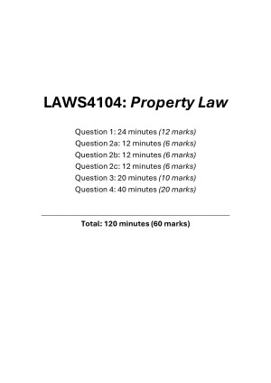 Comprehensive Property Exam Notes - Case tables outlining issue, facts, ruling, and principles - Comprehensive notes on all examinable topics including adverse possession, rights in relation to property, finder's rights, transfer of interests, priority disputes and co-ownership - Concise breakdown and attack plans of detailed concepts - Easy to navigate - 80%+ Exam mark