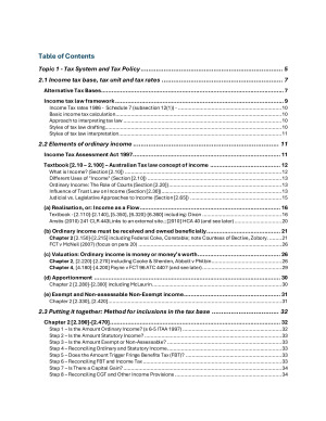 This is probably the most comprehensive notes you are going to find. These notes offer an in-depth and structured summary of core topics in the subjct, covering both policy and black-letter content. All key topics are covered including legislation, and cases are integrated into the notes, with detailed references to textbook sections, statutory provisions (especially the ITAA 1997 and ITAA 1936), and leading judgments. Topics Covered Foundations of Taxation What is a tax? (statutory and judicial definitions) Purpose of taxation: revenue, redistribution, legitimacy The structure of the Australian tax system (constitutional, administrative, legislative) Key Australian taxes: income tax, GST, FBT, excise, land tax, etc. Comparison with international tax systems Tax Bases and Policy Design Tax base choices: income, consumption, and wealth Simons' Comprehensive Income Concept (Haig-Simons formula) Australia’s global (vs. schedular) approach to income tax GST and indirect taxes Wealth taxes and their decline globally Policy reform debates and Adam Smith's principles Income Tax Framework Overview of the ITAA 1997 and ITAA 1936 structure Statutory basis: Div 4, s 6-5 (ordinary income), s 6-10 (statutory income) Tax rates, deductions, offsets, and basic tax calculation methodology Interpretation of Tax Law Acts Interpretation Act 1901: purposive vs literal approaches Principles-based drafting vs black-letter drafting Key interpretive cases ( MLC, CIC Insurance, Scott, McNeil) Ordinary Income (s 6-5) Legal concept of income: five judicial categories Judicial and economic definitions of income Periodic receipts and regularity ( Dixon, Anstis) Compensation and windfall gains Trust law influence (income vs capital) Special topics: constructive receipt, beneficial ownership ( Federal Coke, Zobory, Constable) Valuation of Non-Cash Benefits Cash vs convertible to cash (Tennant, Cooke and Sherden) Non-transferable rights (Abbott v Philbin) Frequent flyer cases and TR 93/2 (Payne v FCT) I have other notes available for this subject that are more concise.