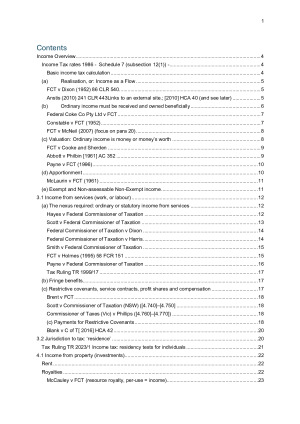 Comprehensive Taxation Law and Policy Exam Notes. Completed the subject in Sem 1 2025 with Miranda. These notes only include topics which were examinable including: Assessable Income – Ordinary Income (s 6-5) Assessable Income – Statutory Inclusions (s 6-10) Capital Gains Tax (CGT) Deductions – General Deductions (s 8-1) Specific Deductions and Non-Deductible Expenditures Capital vs Revenue Distinction Timing Issues – Derivation and Incurrence Trading Stock and Depreciating Assets Fringe Benefits Tax (FBT) Goods and Services Tax (GST) Tax Accounting and Timing Rules Taxation of Entities (especially Companies and Trusts) Tax Avoidance – Part IVA Residency and Source Rules International Tax – Foreign Income and Tax Treaties