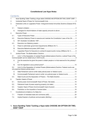 These notes are handcrafted to be applicable to any potential issue arising in a Constitutional Law exam, structured to be copy/pasted (or written verbatim) for the Issue and Rule followed by step-by-step questions to answer in analysis with analogies for that H1 critical analysis. These are the most straightforward set of notes to ensure you do well in your exam.