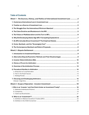 This subject can be quite demanding, especially with all the readings and cases. These notes are structured in an easy-to-understand and apply manner and are probably the most comprehensive notes you are going to find. Topics include: Jurisdiction of investment tribunals Fair and equitable treatment (FET) Expropriation and compensation standards Umbrella clauses and most-favoured nation (MFN) treatment The legality requirement in investment disputes Remedies in investor–state arbitration Leading ICSID and UNCITRAL cases explained