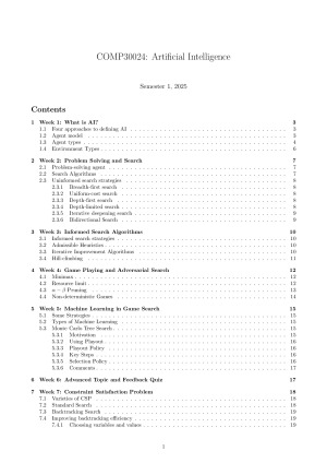 Complete notes covering all topics from week 1 to 12 compiled in LaTex. Includes everything needed for exam, with explanatory examples, algorithms, and many diagrams. Mostly concise sentences about important points organised in short sections so they are much easier to read and understand than long paragraphs. Am sure you can do well in the exam if you study these notes and fully understand them! Best of luck! =)