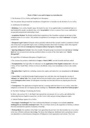 Contains the following: 1. What is law and why do we have it? 2. Legal Research and writing 3. History and foundation of the Australian legal system 4. Mabo's case 5. Legislation 6. Statutory interpretation 7. Statutory interpretation continued 8. Statutory interpretation continued 9. Case law 10. Case law continued 11. Legal Ethics 12. Cheat sheet of statutory rules 13. Cheat sheet of case summaries 14. Cheat sheet of identifying doctrines