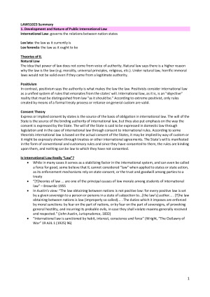 Clean, Organised, Well structured Notes. Good for problem questions and essays includes justices' judgements. Topic 1: Introduction to the Unit / Nature of Public International Law / Sources of International Law Topic 2: The Law of Treaties Topic 3: Personality, Statehood, Self-determination Topic 4: Title to Territory Topic 5: Public International Law and Municipal Law Topic 6: State Jurisdiction Topic 7: Immunity from Jurisdiction Topic 8: State Responsibility Topic 9: Use of Force Topic 10: Implementation, Enforcement, Accountability