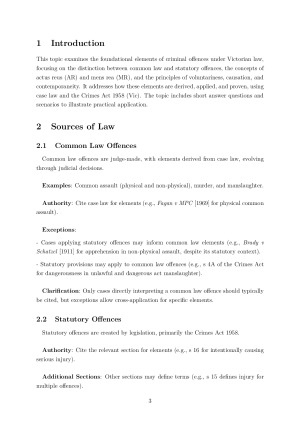 Topics covered: - Elements of crime (actus reus and mens rea) - Non-fatal offences against the person ( assault) - Sexual offences - Murder - Manslaughter - Defences - CASE SUMMARY BANK - summary of each case With detailed notes on each, for maximum assistance during exam. In-text citation provided for cases and statutes - so that during the exam you can immediately know which case/statute to reference.