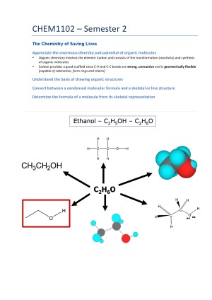 Great CHEM1102 study notes that summarise all lectures and tutorials. More than adequate information needed for the CHEM1102 course on organic chemistry.