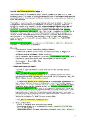 This document is a summary of the 6th edition textbook (it cites specific 6th ed sections/pages). Topics - Chapters covered - What is equity? (nature of equity, relationship with common law, maxims, unconscionable conduct - Nature of equitable interests + dealings with equitable interests (types of equitable interests, “mere equity”, how interests are created)- Priorities in proprietary rights (law of priorities) - Law of assignment (assignment at law - assignment in equity) - Confidential information (Ch 9)/ breach of confidence - Fiduciary obligation (Ch 10) - Proprietary estoppel (Ch 14): relief (how courts craft remedies) - Introduction to trusts (Ch 20) (elements, nature/creation of trusts) - Creation of express trust (Ch 21) - Secret trusts & half-secret trusts (requirements and forms) - Varying and terminating express trusts (Ch 22) - Rule against perpetuities (incl “wait and see” reforms) - Charitable trust (Ch 23 ) - Administration of charitable trusts (Ch 24) (AG role, schemes/cy-près) - Resulting trusts (Ch 25) - Express trust (Ch 27) - Constructive Trust (Ch 35) and Remedial Constructive Trust (Ch 36) - Trustees (Ch 26) (appointment, removal and retirement of trustees; rights, powers and duties) - Beneficiaries (Ch 27) (interests, rights and remedies) - Breach of trust - Remedies for breach of trust - EQUITABLE REMEDIES AND DEFENCES (Ch 28) - SPECIFIC PERFORMANCE (ch 29) - INJUNCTION (Chapter 30) - Freezing orders (Ch 31) - Search (‘Anton Piller’) Orders (Chapter 31) - EQUITABLE DAMAGES - Equitable compensation - TRACING (Chapter 37) - OTHER EQUITABLE REMEDIES (Chapter 38) (1. Account for profits; 2. receivers; 3. delivery up and cancellation of documents)