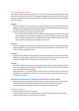 Incredibly detailed mid-semester test notes. Detailed explanations of each topic and how they apply, as well as comprehensive case summaries to allow students to analogise / distinguish from the exam questions (this is where HD students get marks). Covers everything assessed in the mid-semester test. Provides step-by-step answer framework for key topics (and how case law applies). TOPICS: - equitable interests arising by operation of law - co-ownership