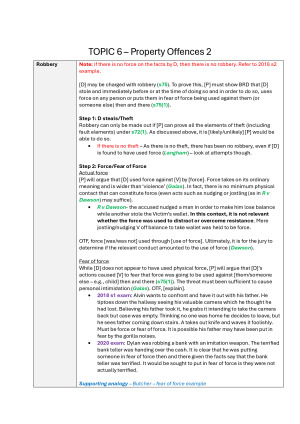 This comprehensive script helped me achieve a HD (90) for my exam and the overall unit! It condenses the overwhelming and complex content into simple, concise sentences for ease of use in stressful exam conditions. I have also incorporated examples to prompt speedier problem identification, following ideal tutorial answer outlines and CE exam answer guides. Most issues have been considered and integrated into these notes, however, may be subject to changes to the unit curriculum. TOPICS INCLUDED - Topic 2: Criminal procedure - Topic 3: Criminal responsibility and defences - Topic 4: Attempts - Topic 5: Property offences 1 - Topic 6: Property offences 2 - Topic 7: Strict and absolute liability - Topic 8: Drug offences