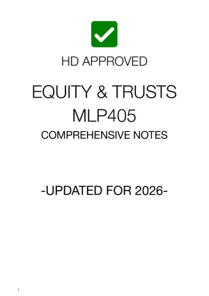 Dominate the Equity & Trusts exam with the notes that secured one of the highest scores in the cohort. These 2026-updated notes are straight to the point and optimized for answering complex problem questions under exam pressure. These notes cover: UNDUE UNFLUENCE UNCONSCIENTIOUS DEALING FIDUCIARY DUTIES / OBLIGATIONS FIDUCIARY REMEDIES TRACING TRUST PROPERTY - INJUNCTIONS SPECIFIC PERFORMANCE - TRUSTS CATEGORISATION OF TRUSTS FORMALITIES FOR THE CREATION OF EXPRESS TRUSTS TRUSTEE DUTIES BENEFICIARY AND TRUSTEE RIGHTS AND POWERS CERTAINTY REQUIREMENTS FOR EXPRESS TRUSTS CHARITABLE TRUSTS