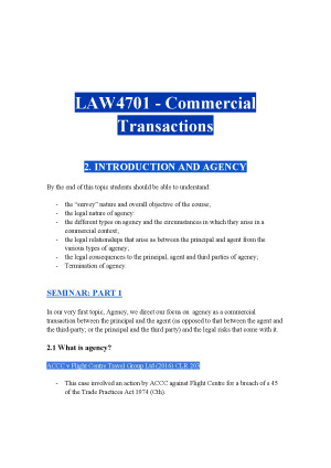 Comprehensive and detailed LAW4701 Commercial Transactions notes. - Intro and Agency - Partnerships - Sale of Goods: Domestic - Bills of Exchange - Guarantees - Insurance - Security Interests Over Personal Property - Bankruptcy Best of luck with the unit!